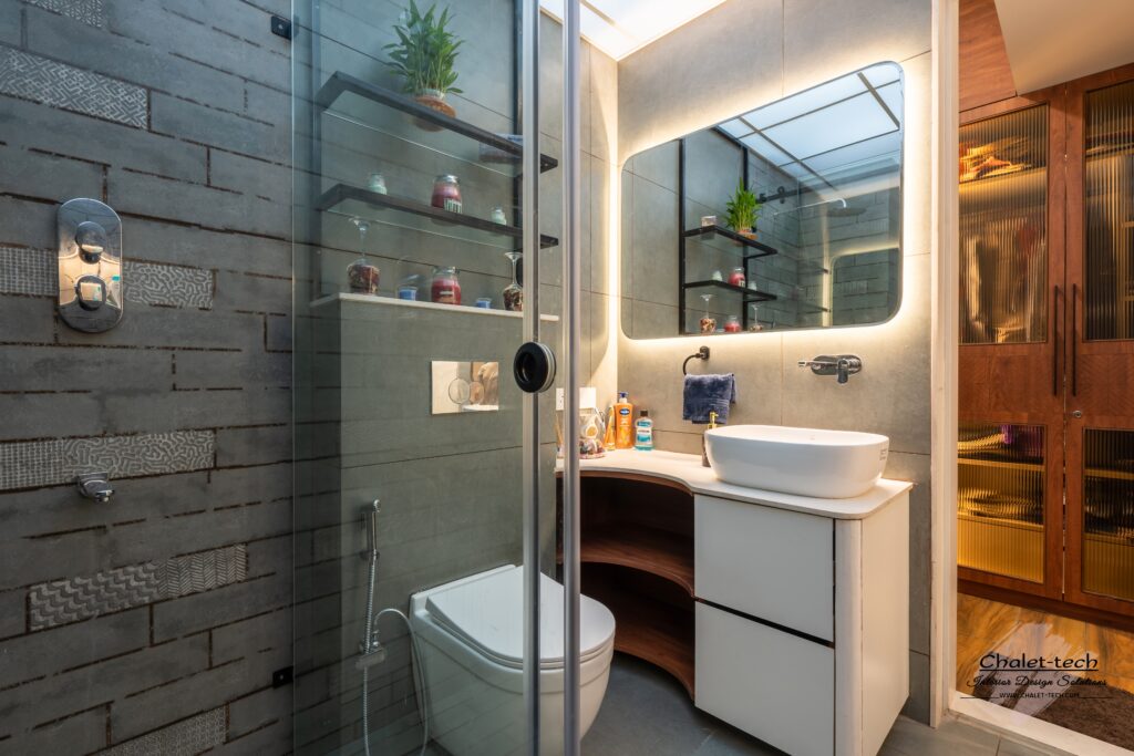 Elevate your daily routine with a beautifully designed bathroom that feels like a luxury spa. Our bathroom interior design philosophy centers on creating serene, functional, and aesthetically pleasing spaces, customized for the scale of your project, from a 2BHK renovation to a large 3BHK fit-out. We design for durability and water resistance, selecting high-quality bathroom tiles, stylish bathroom fixtures, and modern vanities. Whether you are planning a complete master bathroom remodel, updating a powder room, or seeking a small bathroom design that maximizes space, our team ensures every detail is perfect. Key focuses include walk-in shower design, freestanding bathtubs, and sophisticated bathroom lighting. Let us transform your space into a tranquil and luxurious bathroom retreat with timeless design and expert craftsmanshi